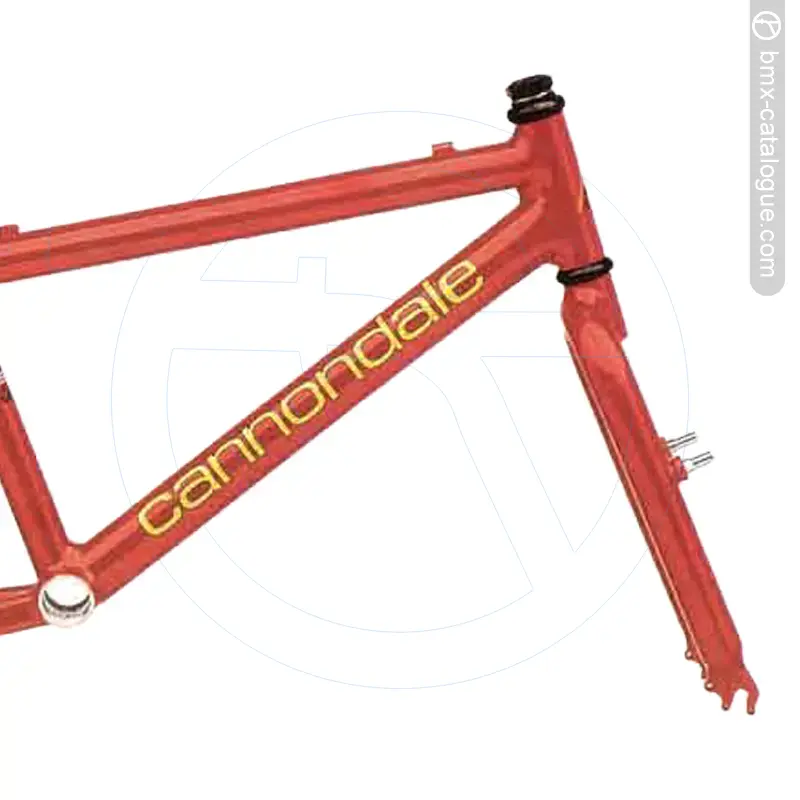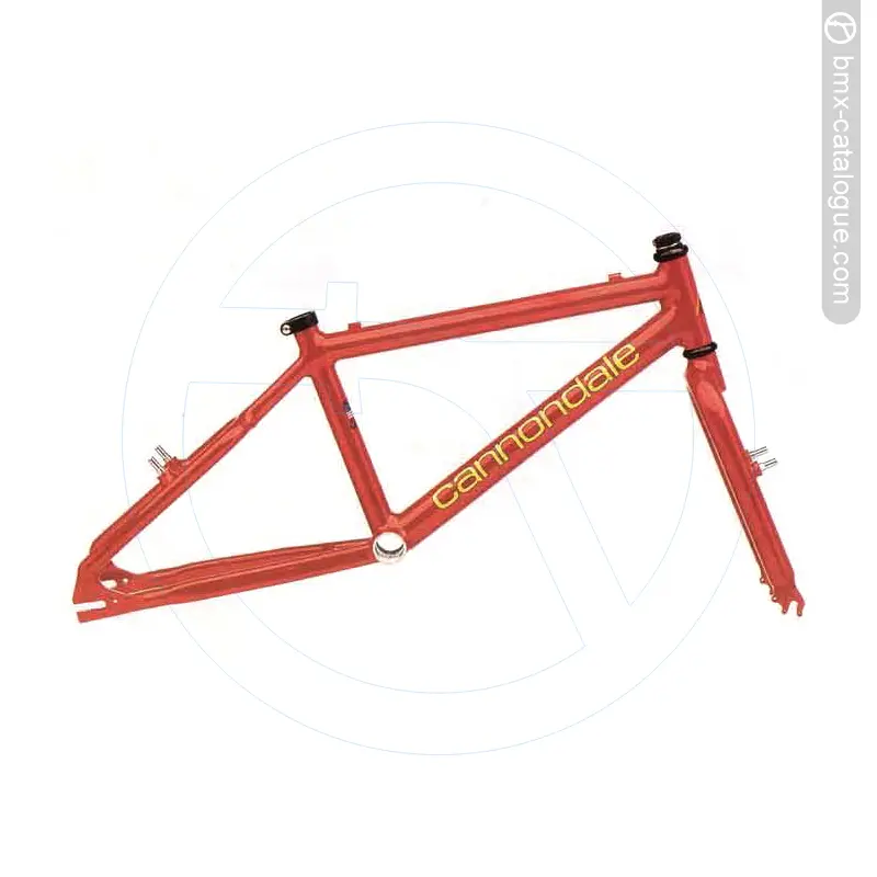 Ultra light and incredibly stiff the 1995 Cannondale Expert alluminum BMX fame and Mega Weenie fork features removable Cantilever fork studs for rear brake only set-up. Beefed up headtube to prevent ovalizing. American bottom bracket. Available in 20" Expert L, XL. More than a decade's experience producing lightweight, high-performance aluminum bicycles is distilled into our new BMX frames and forks. Featuring TIG-welded, 6061-T6 aluminum tubing, lightweight aluminum Mega Weenie™ forks, and beefy 1 1/4" seat tubes for extra bottom bracket stiffness. For extra efficiency, frames feature an oversized bottom bracket shell that accommodates a one-piece style crankset.