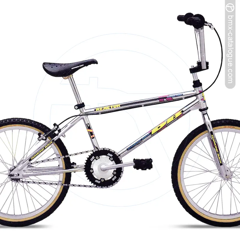 "One of my buddies races down at the Youth Club on a 1992 Diamond Back Reactor, and he whips around on it like it's got a turbo jet pack. I got the 1992 Diamond Back Assault 'cause it looks rad and it has the same geometry as the Reactor, so I know it can rip too. Something as sweet as a new DB can't be wasted sitting around in a garage... I had to ride it. The 1992 Diamond Back Reactor features 100% chromoly tig pulse welded frame and fork. Reactor series racing tires. Alloy rims and hubs.