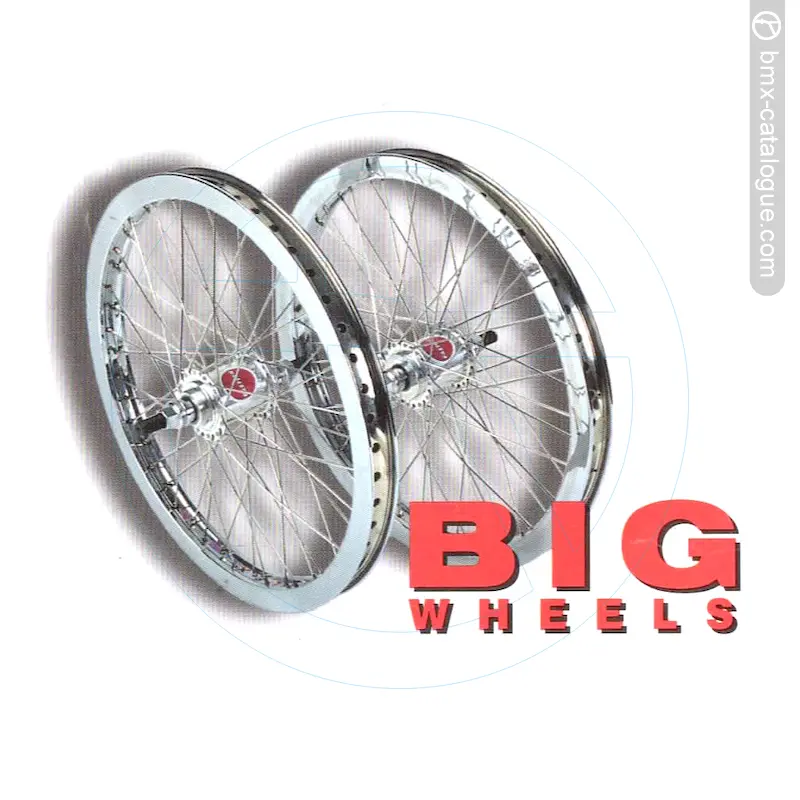 The 1999 Eastern Bikes BMX Catalogue parts and accessories including handlebars, wheels and forks. Big Wheels - Alex Rims, Eastern Haus Hubs, 14mm chrome-moly axles. Oversizes aluminum shells. Seales bearing. Brutus Bars - Handlebars, 8" rise, 26" wide (can be cut to 22"), 8˚ up swing, 5˚ back sweep, 1" grip bars - .083 guage, 1 1/8 crossbar - .049 guage, 7/8" clamp bar - .125 guage. Amazon Forks - 3/8" thick steerer tube, 1 3/8" OD - .065guage, 1/4" thick dropouts, Available regular with peg bosses or plain Jane without peg bosses.