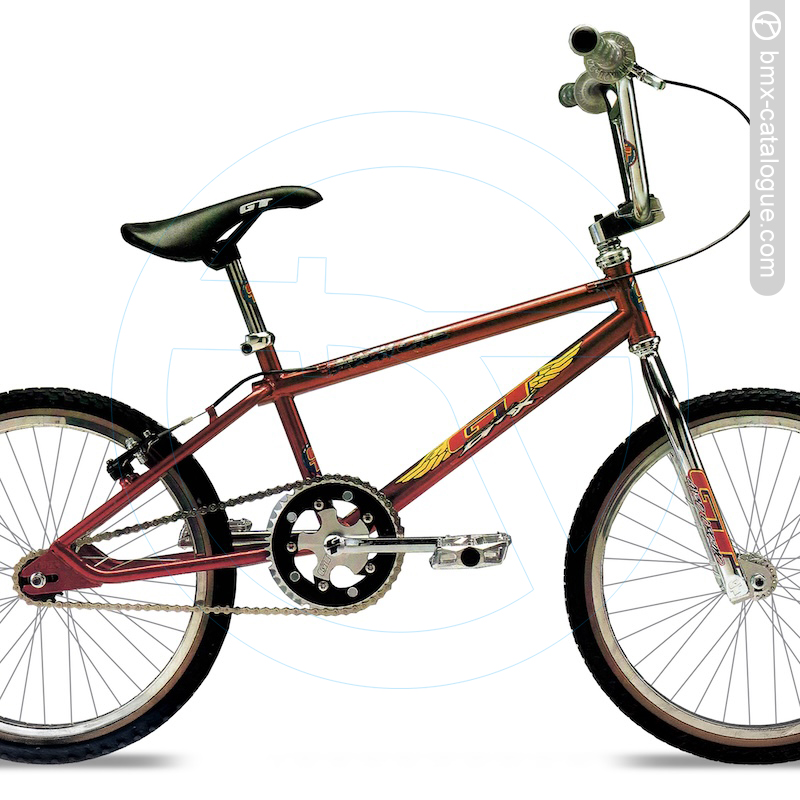 Brand new for '95, the U.S.A. Made GT Mach One is a tough package to beat. From the 1½" down tube, cantilever brakes, oversize forks and GT AA Pro tires, the Mach One is the bike to take you from the schoolyard to the front the moto at your local track. Built of 100% True Temper chromoly tubing the Mach One is ready. Colors: Chrome Plated, Black, and Candy Red.