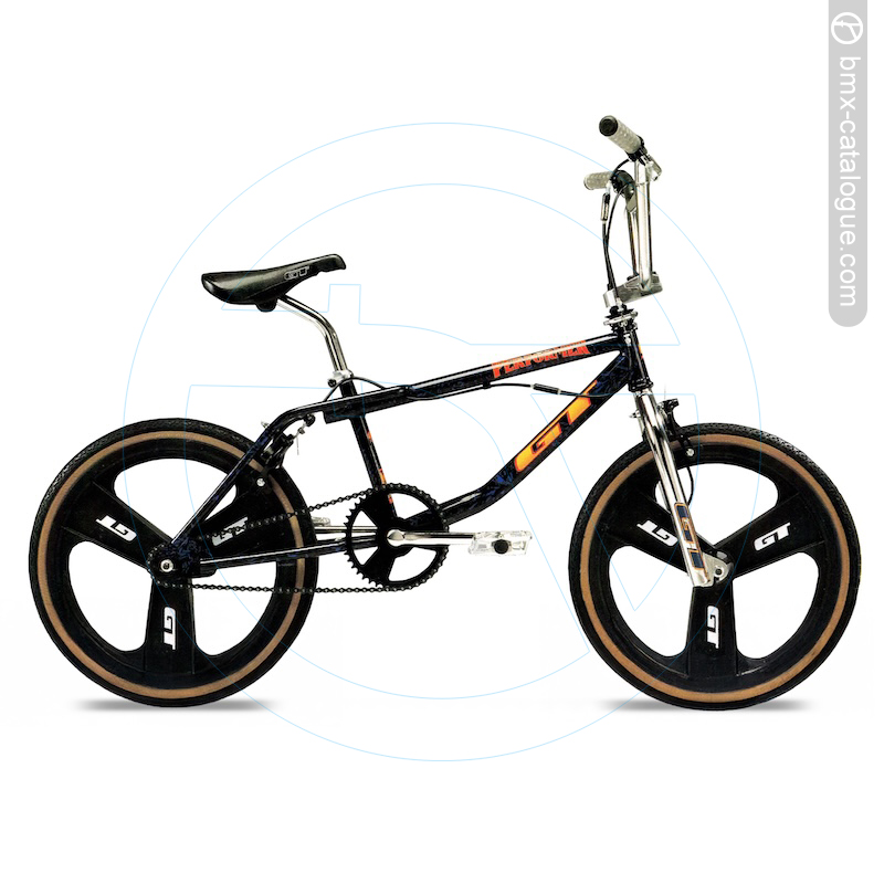 The 1995 GT Performer. For '95, the GT Performer features an oversize down tube, chromoly main tubes, GT 3-spoke mags, DiaCompe and Odyssey brakes, GT crank and GT freestyle handlebars. Let the Performer take you to the next level. Designed and Built in the U.S.A. Colors: Chrome Plated, Black and Blacklight.