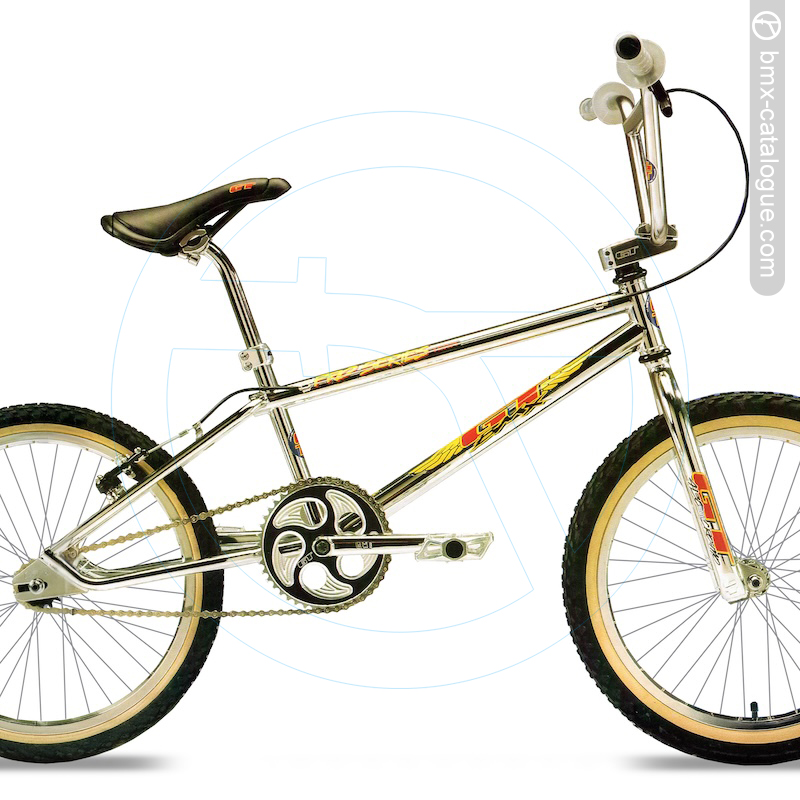 1995 Pro Series Team. GT's premiere BMX bicycle just got better. The new '95 design includes oversized head tube, mountain bike-sized headset, and 1½" downtube. Bolting on a new GT Ahead style stem, GT Power Series three-piece cranks and a GT micro-adjust seat post, you get a U.S.A. Made Pro Series Team that is lighter, stronger and faster than ever. This is the same bike that has taken the World Championship GT BMX Team to countless wins all over the world. The Pro Series Team is also available as a frame kit which includes frame, fork, headset, stem, and cantilever brakes. Ride the same bike as Pro World Champion Gary Ellis. Color: Chrome Plated.