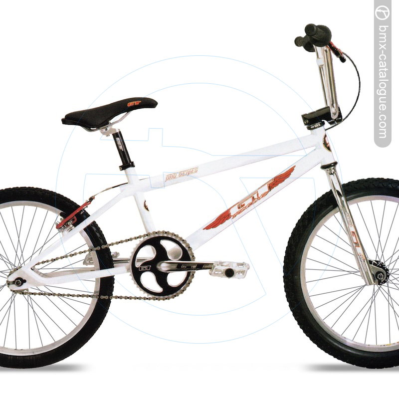 GT 100% 4130 CrMo frame with 20.5" top tube • Slammed geometry with shorter fork blades for improved tability and better acceleration • GT 100% CrMo fork with 1-1/8* blades and threadless steer tube • GT 100% CrMo crank 180mm • GT CNCd 44 tooth chainwheel • Dia-Compe cold-forged direct-pull brake and MX-1 lever • GT alloy platform pedals • GT 4130 CrMo Pro handlebar with narrow width and increased flat section to keep your grips and brake ever out of the handlebar bend • GT two-piece padded saddle • Colors: Chrome, Gloss White, Gloss Black.