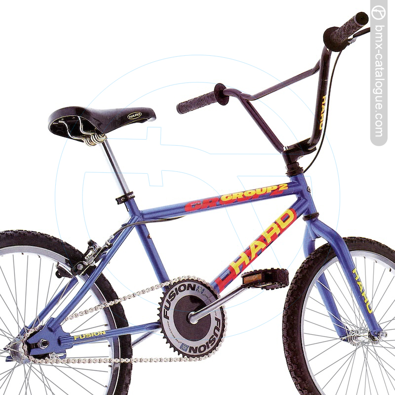 The Haro Group 2 is all new for 1993. If you're looking for an all-around BMXer for heavy duty street/dirt potential, this is your ride. Check out the chrome rims and Haro Holeshot tires. Stopping is handled by both rear coaster and Dia-Compe Bulldog caliper. Add Fusion alloy stem, Unitorque seat clamp and Compact Disc Drive System and you're ready to race...or maybe just blaze back and forth to school.