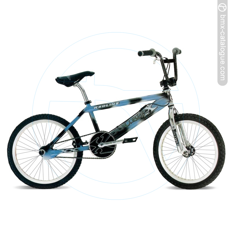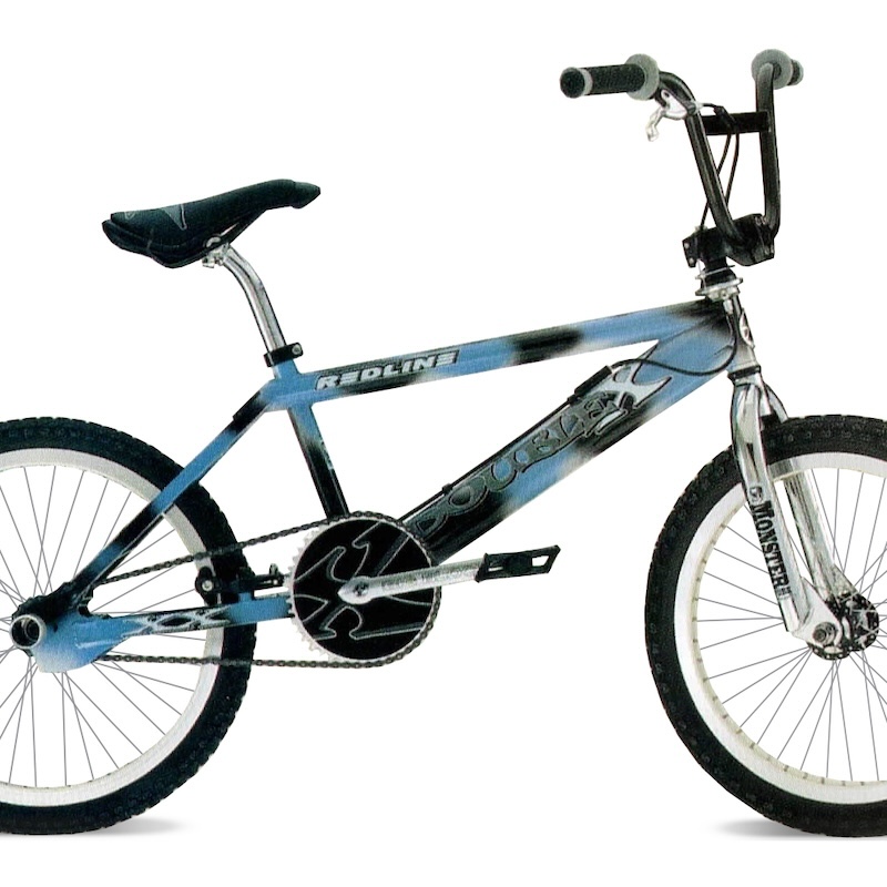 2000 Redline Double X. The perfect bike to go out and tear up the trails. FRAME Double-X Quadmoly with Super Squareback Stays, Machined Head Tube an Bottom Bracket Shells FORK REDLINE® Monster Forks Chromoly with "starnut" welded in to steerer H/BAR REDLINE® .090" Trail Bar with Square Cross Bar STEM REDLINE® Pro Threadless GRIP REDLINE® Dual Density Freaky G HEADSET Tioga Threadless BB SET REDLINE® Big Block Loose Ball CRANK REDLINE® Big Block 180mm Chromoly C/RING REDLINE® "X" Gear Alloy 44T TIRE SET REDLINE® Comp III Type RIM ALEX MX-22 48H w/ CNC Sidewalls SPOKE 14G Chrome plated HUB SET REDLINE® Flight 48H with 14mm Axles Loose Ball F/WHL 16T R.BRAKE Tektro 906 U Brake SPINNER SST ORYG LEVER Tektro 271A CHAIN KMC 410H Black SADDLE REDLINE® Dirt Dog X Padded S/POST REDLINE® Slight Layback Micro-adjust PEDAL REDLINE® Alloy Platform S/CLAMP REDLINE® PADSET Nope EXTRAS 38mm Threadless Pegs, 1 Pair COLORS Chrome Plated or Arctic Cammo (Shown).