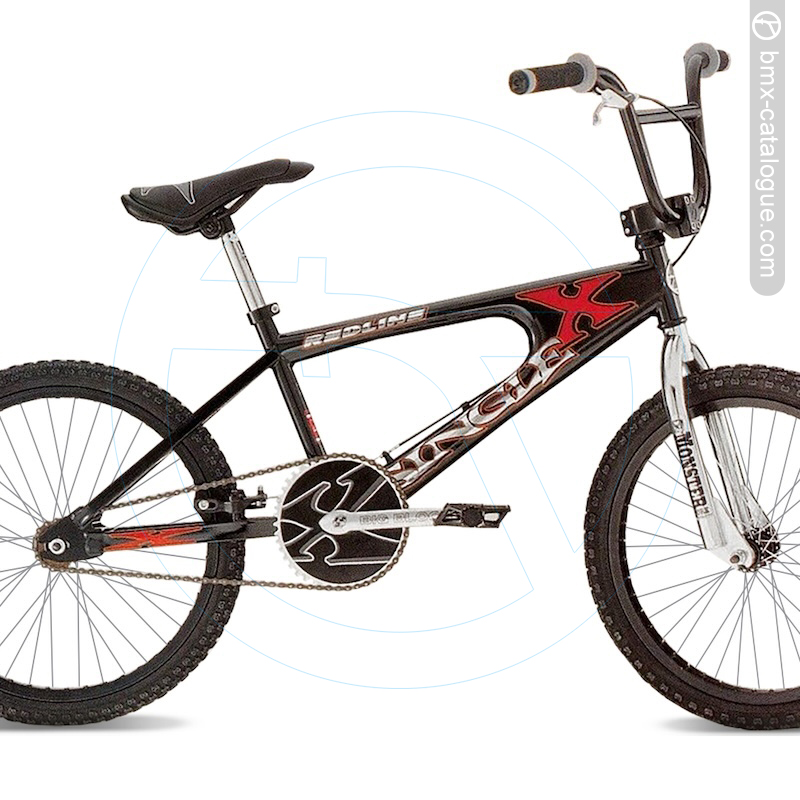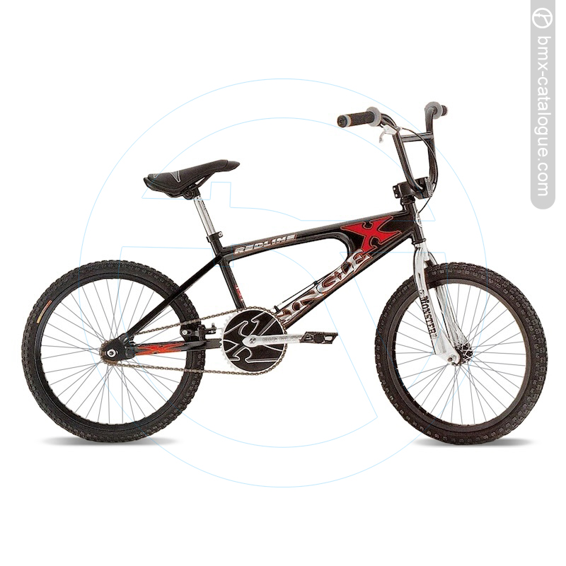 2000 Redline Single X. Stand out from the crowd. FRAME Single-X Monocoque Type Hi-Ten FORK REDLINE Monster Fork H/BAR REDLINE Trail Bar STEM REDLINE Pro Threadless GRIP REDLINE HEADSET Toga Threadless BB SET REDLINE Big Block Loose Ball CRANK REDLINE Big Block 175mm C/RING REDLINE® "X" Gear 44T TIRE SET REDLINE Comp III Type RIM ALEX 7X-24F 48H Alloy SPOKE 14G HUB SET REDLINE Alloy 48H F/WHL 16T R.BRAKE Tektro 906A U Brake LEVER Tektro 914A CHAIN KMC 410H Black SADDLE REDLINE Dirt Dog X S/POST REDLINE Layback Hi-Ten PEDAL REDLINE Alloy Platform S/CLAMP REDLINE PADSET Nope COLORS Silver, Industrial Black.